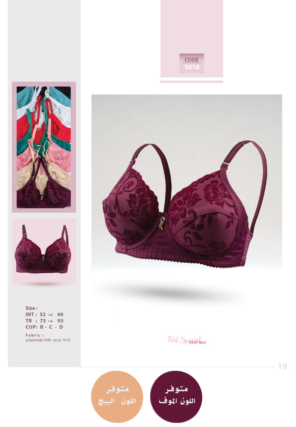 مزيج من الدانتيل المطاطي الناعم والقطيفه مع حواف مريحة مع دعم طوال اليوم ورفع طبيعي. لها تغطية عالية من الأمام والخلف لتأثير ناعم